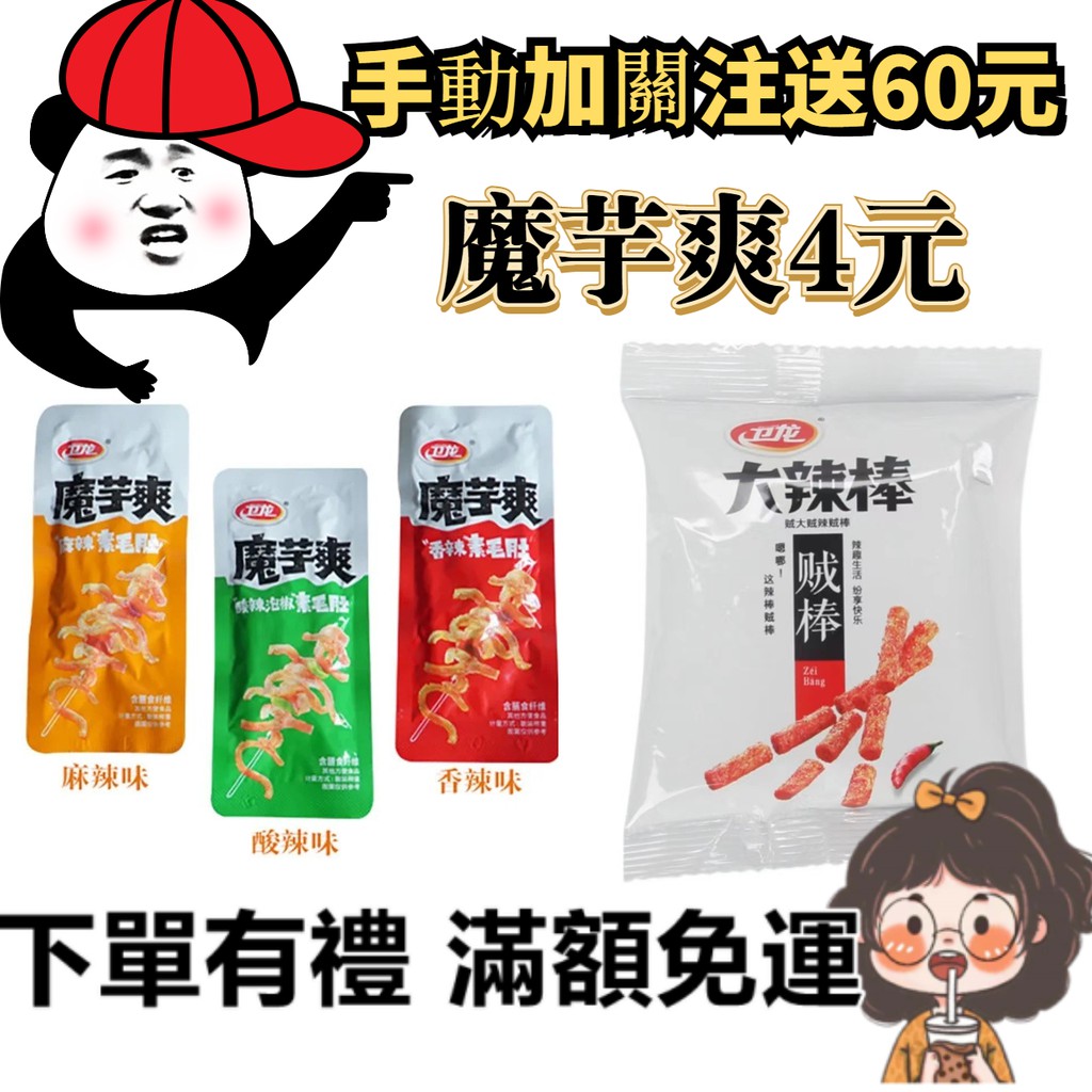 勞力士代購衛龍魔芋爽 素蒟蒻 素毛肚 魔芋小龍蝦 風吃海帶絲 辣條 素蝦仁 親嘴燒 大小麵筋 大小辣棒 素食懷舊小吃 I Position 優惠推薦